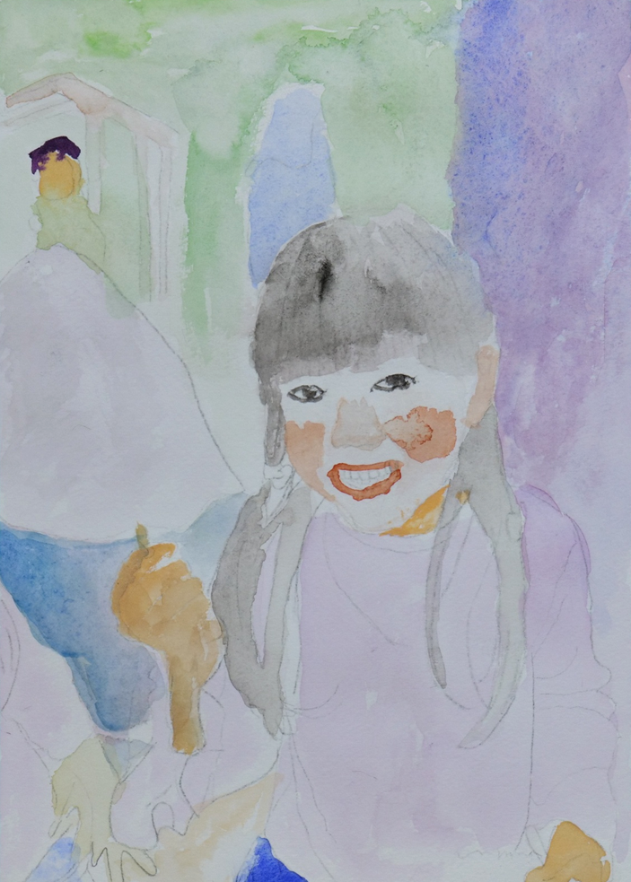昼の受講生は、お孫さんを透明水彩絵の具で描かれました。